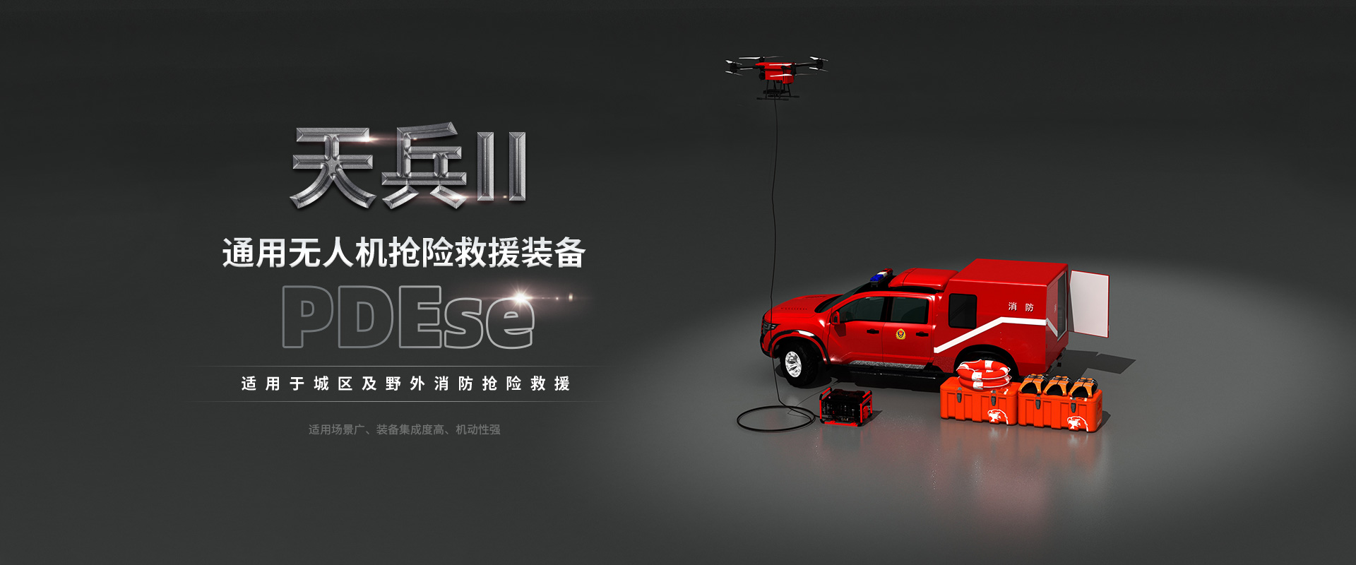 天兵Ⅱ是2020年企业承担的消防与应急救援国家工程实验室开放课题《通用型ag九游会登陆j9入口无人机应急救援综合装备》的研发成果。以中载荷电动无人机为飞行平台,由“隼”式电动无人机、四种标准配置模块、抢险救援模块、承载运输车辆组成,适用于城区及野外消防抢险救援。